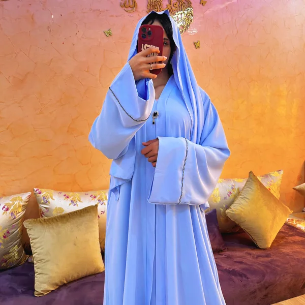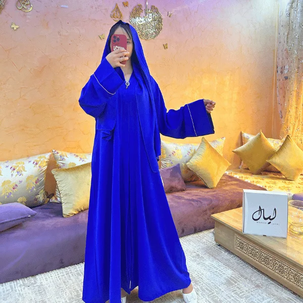 تمتعي بأناقة راقية وجودة عالية مع هاد العباية المصنوعة من ثوب ممتاز، بلمسة تصميم كلاسيكي عصري، ومتوفرة في ألوان ملكية فخمة